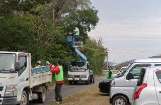 例会には、竜王清流会 幹部の皆様もお越しいただき、高所作業での高木の枝切りなどを実施しました。