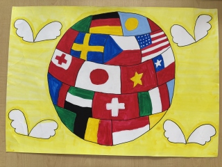 2025(令和7)年9月2日(火)、竜王小学校から59点、竜王西小学校から41点 総数100点の作品が、国際平和ポスターコンテストに出品いただきました。