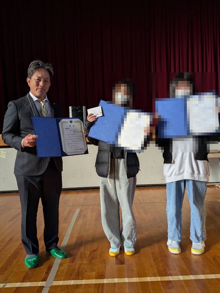 竜王小学校には岡山健喜会長、竜王西小学校へは片岡大第1副会長が赴き、一人づつ表彰状を授与させていただきました。