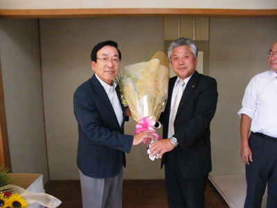 新三役への感謝の花束贈呈のあと、尾川前会長から澤井会長への引継式を無事完了しました。