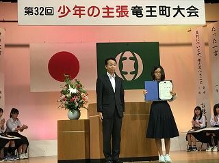 当日は小学生5名、中学生10名の発表があり、その中で、竜王ライオンズクラブ賞として、竹山友里(たけやま ゆり)さん<竜王小6年>「ダンスで学んだ事」、木村優月(きむら ゆづき)さん<竜王中1年>「誰かを救う第一歩」のお二人に贈呈しました。
